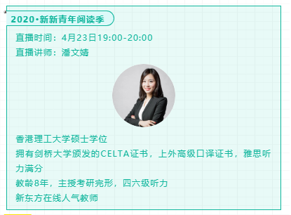 4月23日,新东方在线联合全国多所院校图书馆为同学们送上一场读书分享直播。用10本书,与你携手打开2020新学期的大门!