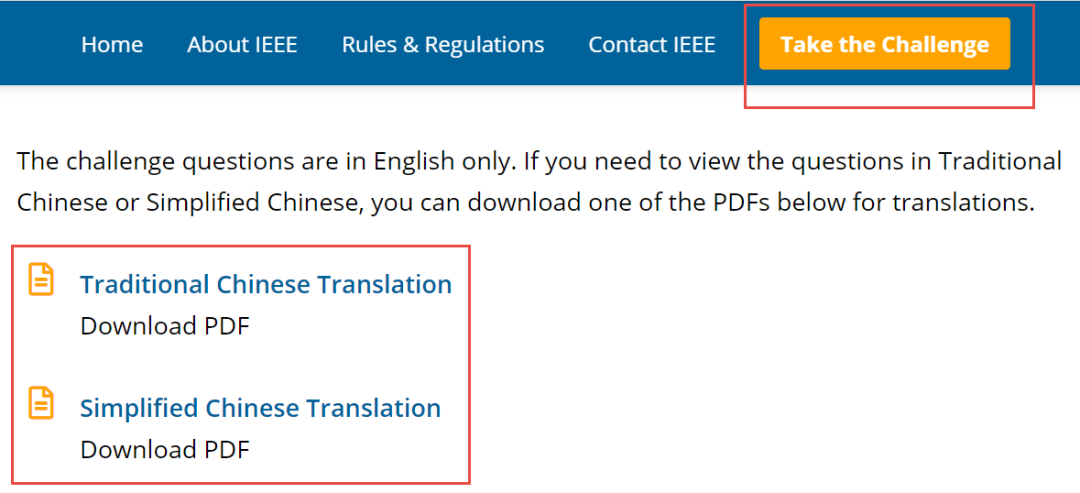 2.点击Take the Challenge填写个人信息与答题,并可在该页面下载挑战赛题目中文翻译