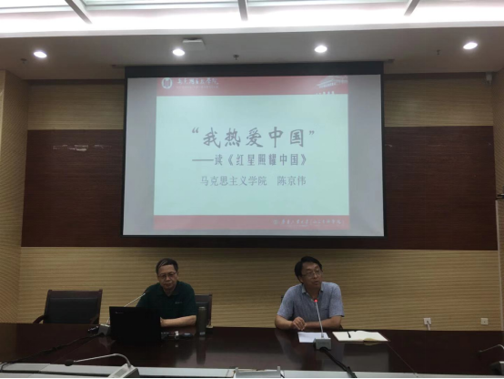 陈老师引用斯诺在生命弥留之际说过的一句话“我热爱中国”作为结束语,引起了大家的思考:正是中国共产党人伟大无私、吃苦耐劳、人人平等的人格魅力征服了斯诺,征服了世界有正义感的人民。该书是一本关于国史、党史教育的好教材,也是做好舆论宣传、讲好中国故事的好教材。