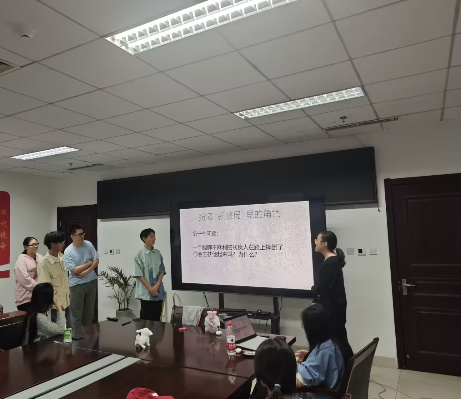 紧随其后的第二个互动游戏以“谁是卧底”的提问展开,仿生人作为隐藏卧底参与其中。同学们亲自上台体验、扮演,切身领会到仿生人绝对理性、缺乏情感温度的思维模式。在这场沉浸式体验中,大家不再只是旁观者,而是真正走进仿生人的视角,进而对其存在意义、情感缺失与人性边界产生了更为深刻的思考。