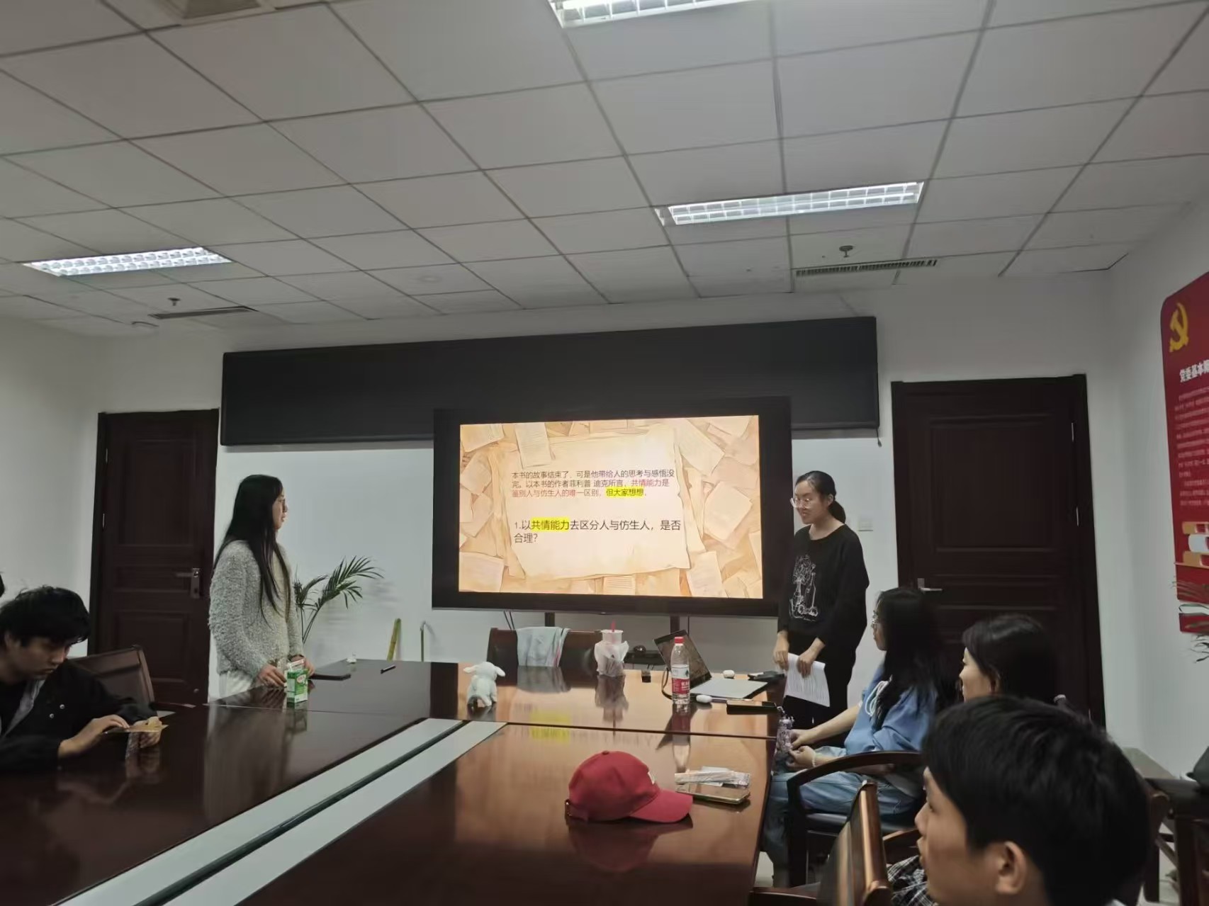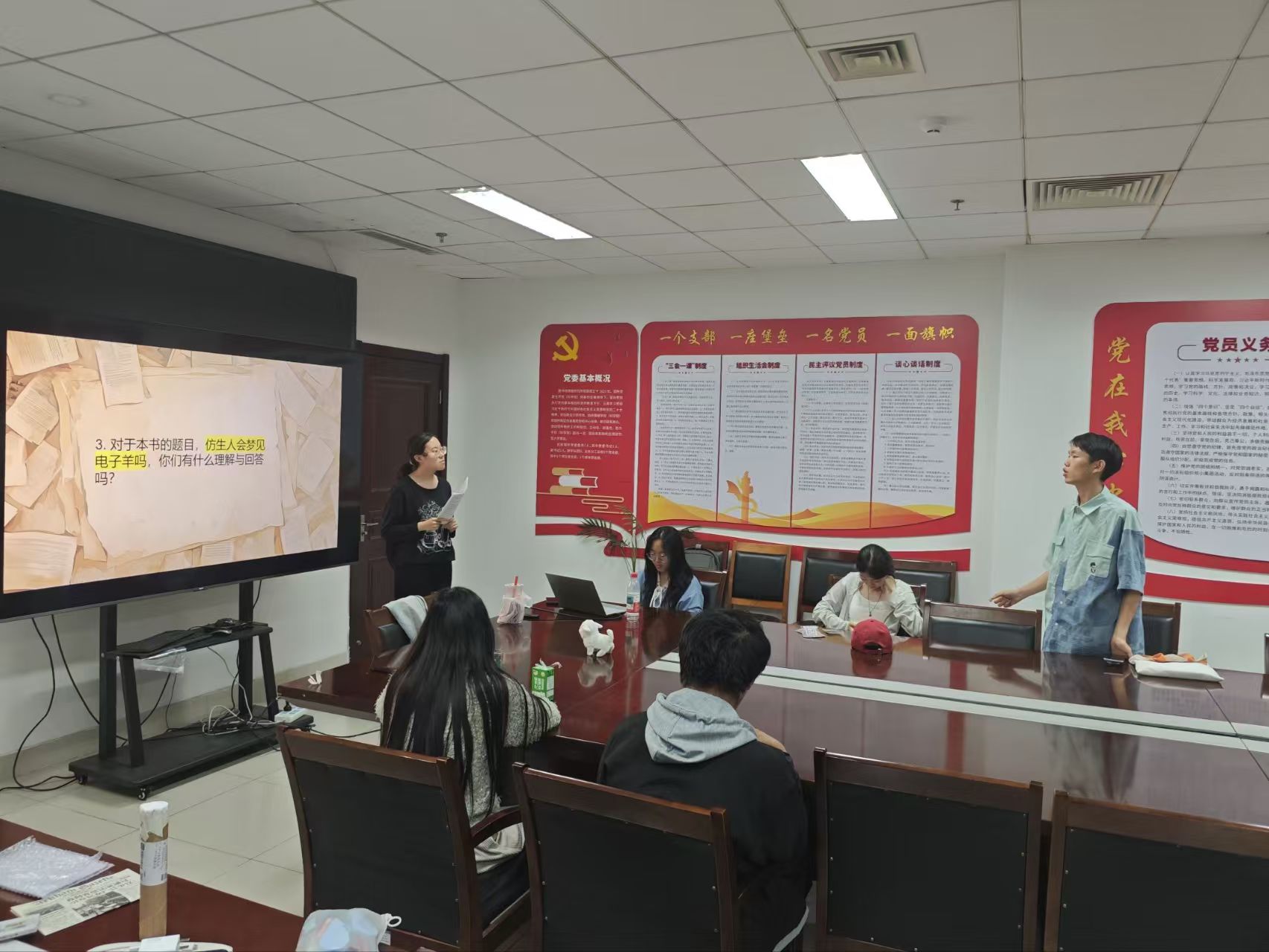 活动开始,主持人首先以 “仿生人会梦见电子羊吗?”为引,抛出悬念,瞬间抓住全场注意力。随后,一段精心制作的视频缓缓展开,直观呈现出小说中核战后荒芜颓废的世界:动物濒临灭绝,仿生人高度拟真却被视为工具,电子羊成为人们寄托情感的虚假慰藉。视频配合解说,完整勾勒出作品独特而深刻的世界观,极大激发了成员们的好奇心与参与热情,为后续深入讨论奠定了良好氛围。