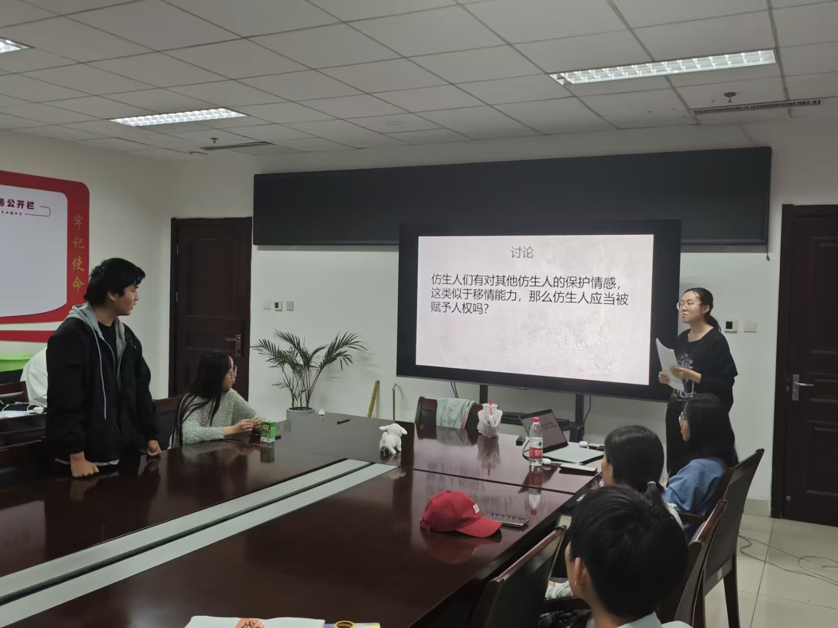 随着同学们的深入思考,现场形成了两种鲜明对立的观点:有人提出仿生人不应被赋予人权,认为其生理结构与人类迥异,所谓情感只是代码伪装,他们没有思想成长过程,不具备真实人性;也有人提出仿生人理应享有人权,不仅因其自身渴望平等,更以现实中部分心智不健全者仍享人权为据,反问人权的边界是否该以生理与成长为标尺。两种观点碰撞,让仿生人是否该享人权的议题,引发了大家对人性本质与权利定义的深层叩问。